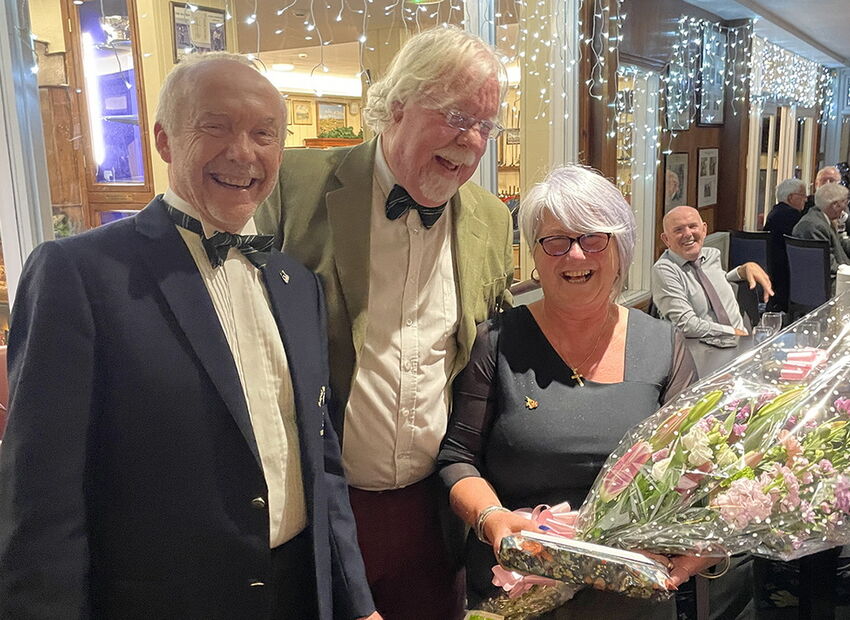 An unsuspecting Rachel accepts a birthday bouquet and chocolates from the Captain and Secretary as a token of the Section’s appreciation for all she does